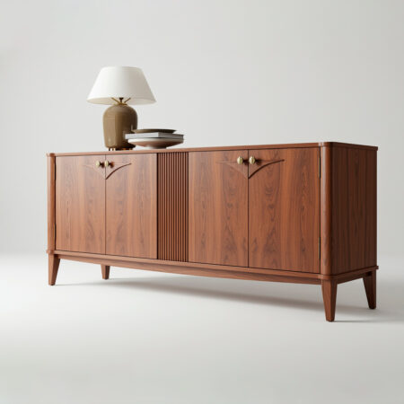 Изготовленный из ценных пород древесины и облицованный шпоном бука экстра-класса, он демонстрирует природную глубину фактуры и изысканный характер материала. Поверхность отделана экологичными лакокрасочными материалами из Италии, обеспечивающими шелковистый блеск и долговечность покрытия.