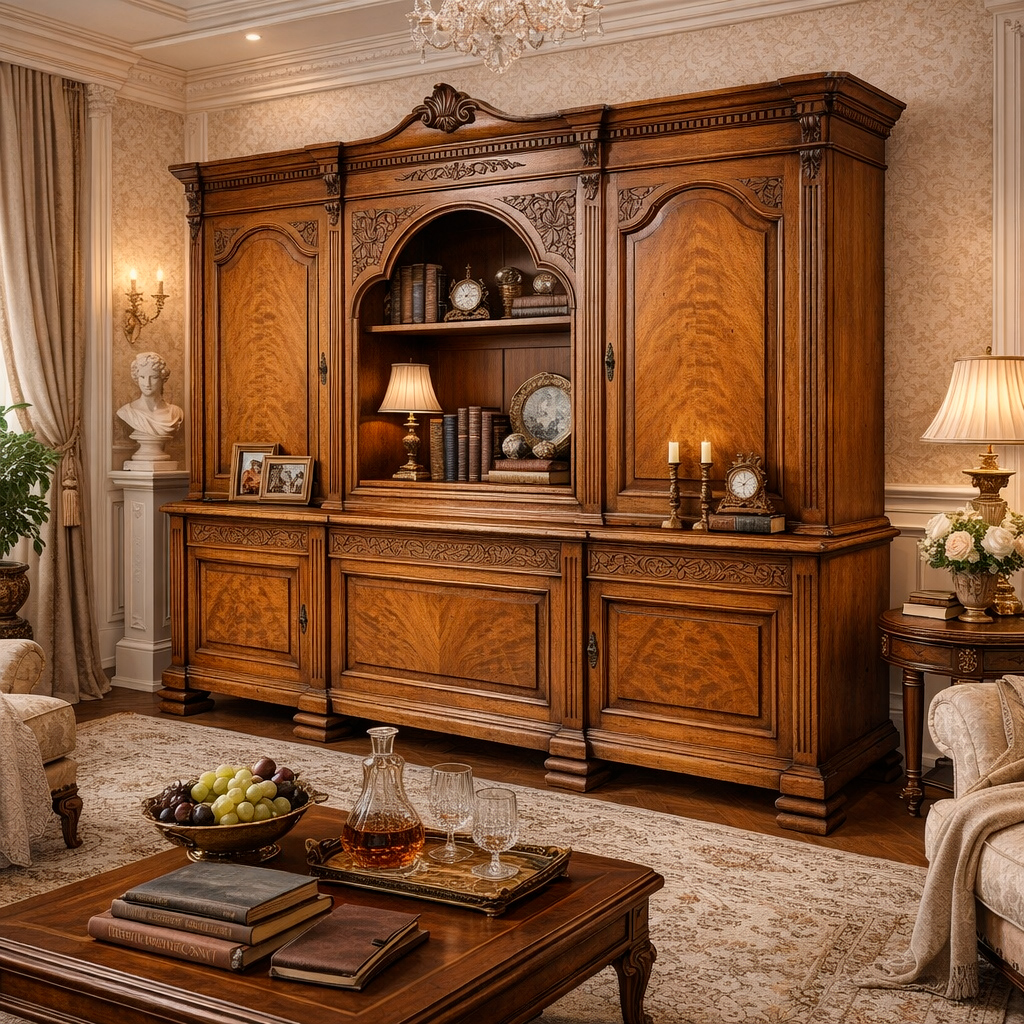 Буфет «Доминик» органично вписывается в интерьеры классика, неоклассика, английский стиль, ар-деко с классическим уклоном, люкс-интерьеры загородных домов и городских резиденций. Идеален для столовой, гостиной или представительского кабинета, где становится центральным элементом пространства, подчёркивающим вкус, статус и приверженность традициям высокого мебельного искусства.