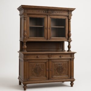 Буфет «Эдмон» из массива ореха — благородный предмет мебели с выразительной классической архитектурой и тонкой ручной резьбой. Верхняя витринная часть со стеклянными фасадами подчёркивает красоту сервизов и декоративных предметов, а нижний модуль с глухими дверцами обеспечивает удобное и вместительное хранение. Точёные опоры, филёнчатые фасады и мягкие линии создают ощущение уюта, статуса и безупречного вкуса.