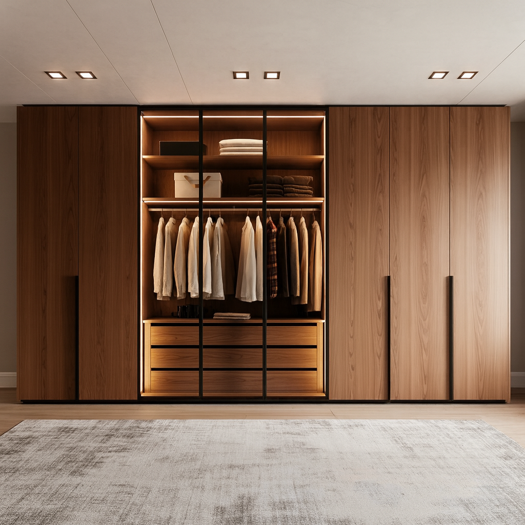 Гардеробная система "Салонеро" гармонично вписывается в интерьеры современной классики, минимализма, контемпорари, становясь не просто мебелью, а архитектурным акцентом, формирующим атмосферу уюта и статуса.