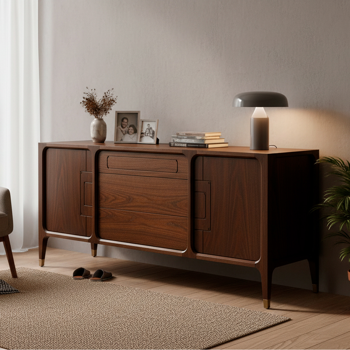 Тумба «Фиренза» — это образец итальянского минимализма и безупречной эстетики, где каждая деталь говорит о вкусе и качестве. Её вытянутый силуэт с чистыми линиями и естественной текстурой ореха создаёт ощущение лёгкости, баланса и изысканной простоты.
