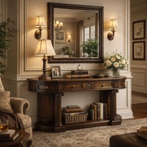 Пропорции делают модель выразительным элементом гостиной, холла или парадной зоны, не перегружая пространство.
