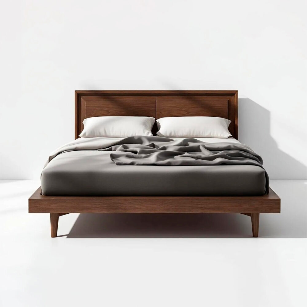 Кровать «Валенте» из массива и шпона ореха экстра-класса, где простота форм сочетается с естественной красотой древесины. Гладкое изголовье с выразительным рисунком ореха создаёт атмосферу тепла и уюта, а точные пропорции подчеркивают современный характер модели.