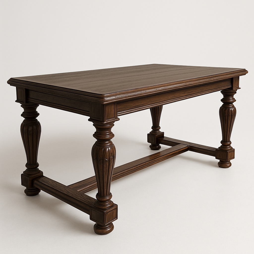 Обеденный стол в классическом исполнении «Эстарио» — образец сдержанной респектабельности и архитектурной выверенности. Каркас выполнен из массива дуба, одной из самых ценных пород, известной своей прочностью, устойчивостью к деформациям и благородной текстурой. Столешница облицована дубовым шпоном экстра-класса, подобранным по рисунку волокон, что создаёт цельный и гармоничный визуальный эффект.