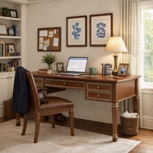 Такие габариты обеспечивают комфортную рабочую поверхность и делают стол идеальным решением для кабинета, домашнего офиса или будуара.