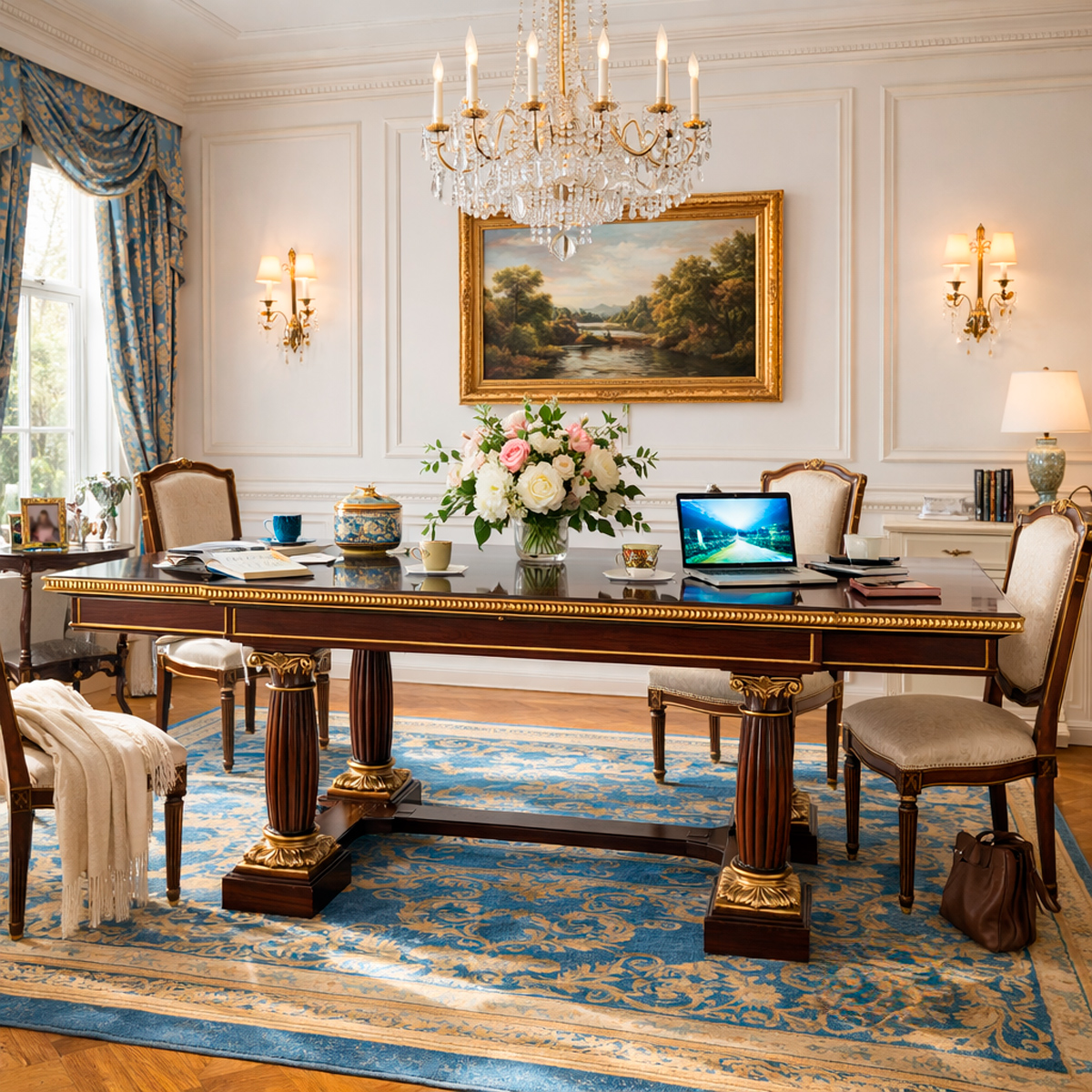 Стол «Белвиль» гармонично впишется в интерьеры в стилях: классика, неоклассика, дворцовая классика, американская классика, ар-деко с историческими мотивами, респектабельные европейские интерьеры.