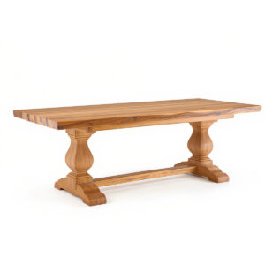 Стол «Бесфор» с выразительной природной текстурой — гармония естественной эстетики и основательной конструкции. Изделие выполнено из массива ясеня, отличающегося высокой прочностью и характерным контрастным рисунком волокон. Массивная столешница с живой пластикой текстуры и архитектурные балясинные опоры формируют образ солидности и благородной простоты.