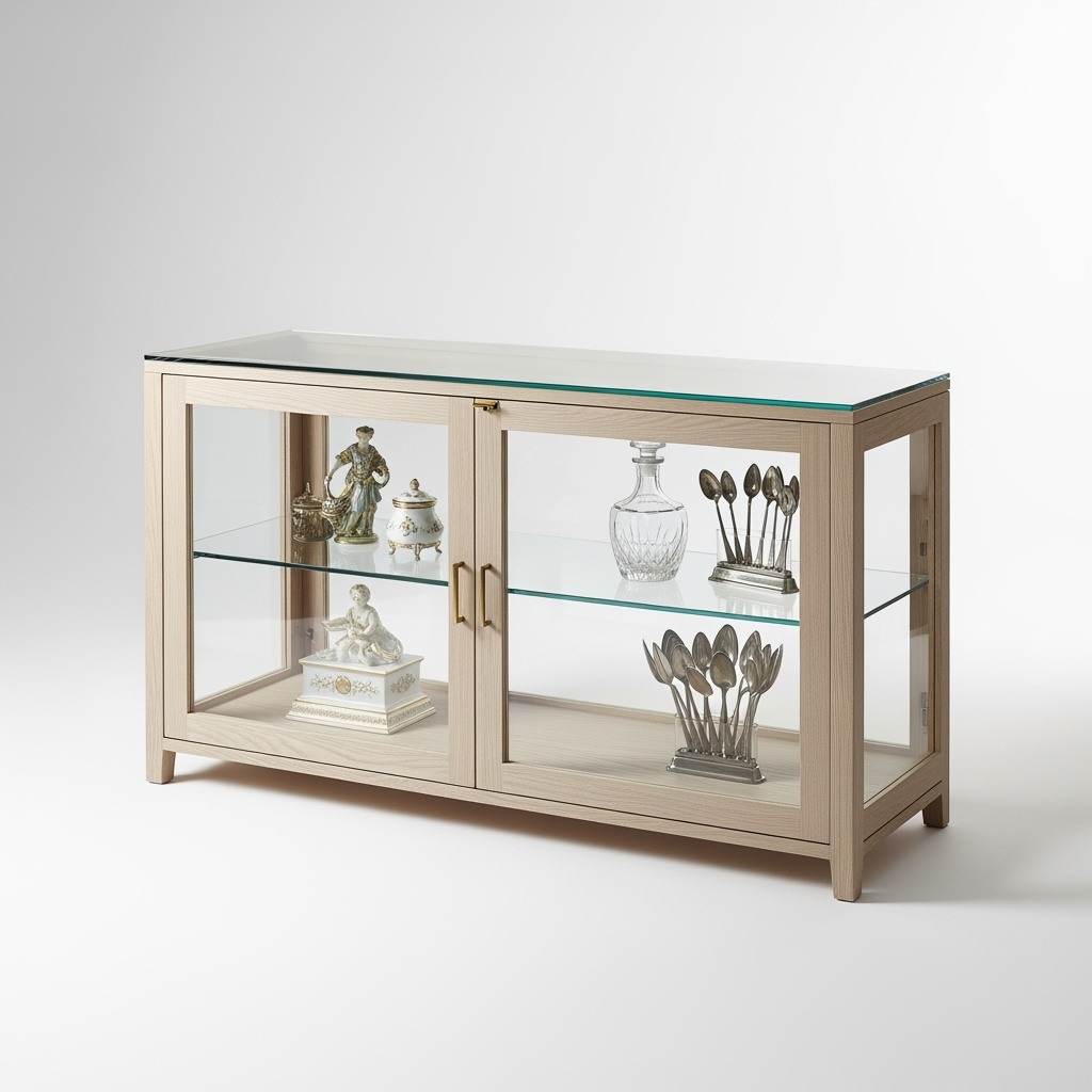 Тумба «Нордико» в современном неоклассическом стиле — образец сдержанной премиальности и архитектурной чистоты. Прозрачные стеклянные фасады и столешница создают эффект лёгкости и визуально расширяют пространство, позволяя эффектно экспонировать предметы декора, посуду или коллекции. Лаконичные пропорции и тёплый светлый оттенок делают изделие универсальным и статусным одновременно.