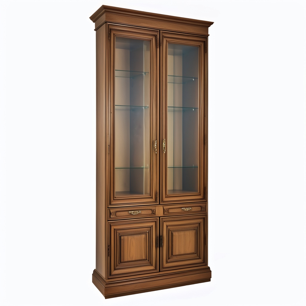 Витрина «Нобилис» в классическом стиле воплощает сдержанную роскошь и безупречные пропорции. Высокий силуэт, стеклянные фасады с изящным обрамлением и аккуратные филёнчатые нижние дверцы создают элегантный образ, подчёркивающий статус интерьера и позволяющий эффектно демонстрировать коллекции посуды, декора или книг.