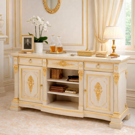Буфет "Арман" гармонично впишется в интерьеры классика, неоклассика, люкс, барокко, ар-деко, а также в статусные загородные резиденции и представительские городские пространства. Он станет центральным акцентом гостиной или столовой, подчёркивая высокий статус владельца, безупречный вкус и уважение к традициям подлинного мебельного искусства.