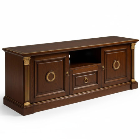 Буфет «Бомоньер» — утонченное прочтение европейской классики из массива ореха, чья насыщенная шоколадно-янтарная фактура и плавный рисунок волокон придают изделию живую природную глубину.