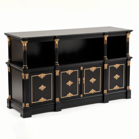 Корпус и фасады изготовлены из ценных пород древесины с применением шпона ореха экстра-класса, отличающегося мягким, благородным рисунком волокон и тёплой натуральной палитрой. Тщательный подбор и ориентация шпона обеспечивают цельность композиции и ощущение монолитности, характерное для мебели высокого класса.